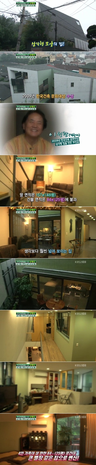 특히 가장 많은 관심을 받았던 것은 2009년 한국건축문화대상을 수상한 집으로 좁은 땅을 극복하고 넓은 공간을 창출해낸 삼각형 집이었다.
