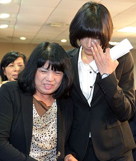 ▲ 19일 기자회견을 갖은 후 눈물을 흘리며 국회 정론관을 나서는 김연경과 어머니