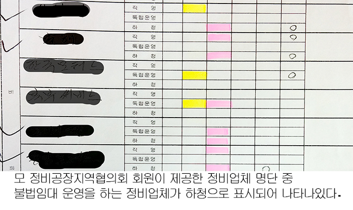 정비업체 “불법알지만 경영난 극복 위해 선택한 길”