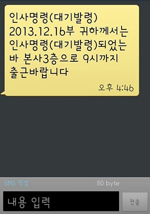 이에따라 김 지회장이 주장했던 "임씨가 본사 대기발령이 있은 다음달인 2014년 1월 18일경 아이를 유산한 사실을 알게 되면서 본사에서 거주지 대기발려과 함께 당시 임모씨에게 발송된 문자