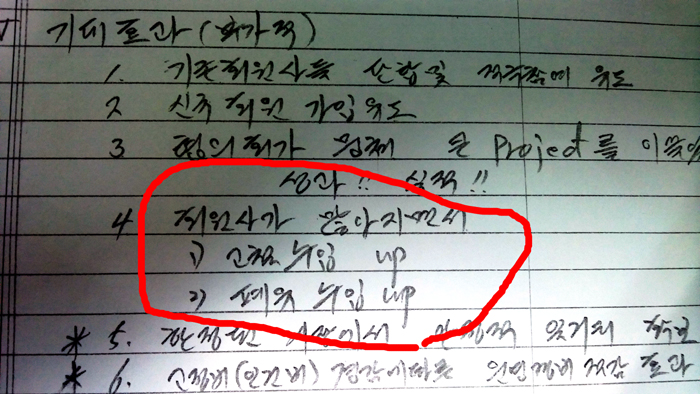 이번에 제보된 내부 회의 자료로 추정되는 A4용지 3장 분량의 자료에 따르면 협의회가 페인트 업체를 선정하는 기준에 임의로 2개 업체를 지정하고 이들 업체에게 발전기금 명목으로 찬조금을 기부 받는다는 내용의 담합사실이 게재되어 있다.
