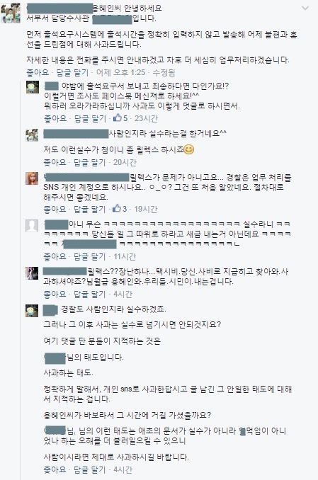 한 누리꾼은 “담당 수사관의 사과하는 태도, 개인 SNS로 사과하는 그 안일한 태도에 대해 지적한 것이다. 제대로 사과하길 바란다”고 전했다.