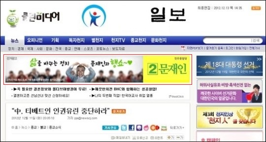 2012년 12월 신천지 기관지에 文 1면 광고 확인