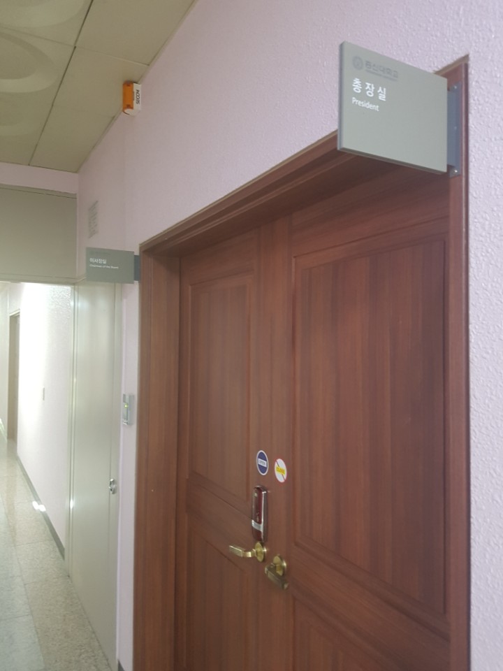 ▲ 현재 학교 내 ‘이사장실’과 ‘총장실’은 같은 출입구, 같은 비서실을 사용하고 있다(사진=오승환 기자)본지의 단독 취재 결과 총신대의 김영우 총장은 '취임 전 타 재단 이사장 해임 이력 논란', '배임증재 혐의', '매관매직 의혹', '학교의 사유화 의혹' 등 여러 의혹들을 제기받고 있었다.