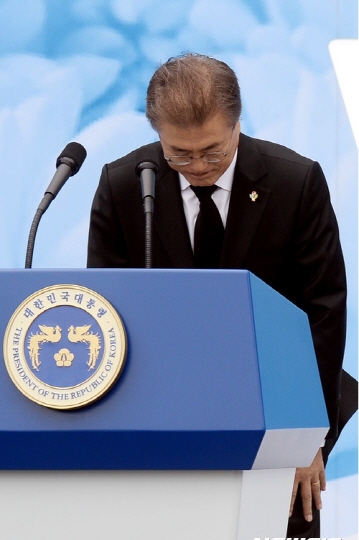 ▲ 추념사에 앞서 인사하는 문재인 대통령,존경하는 국민 여러분, 국가유공자와 유가족 여러분,