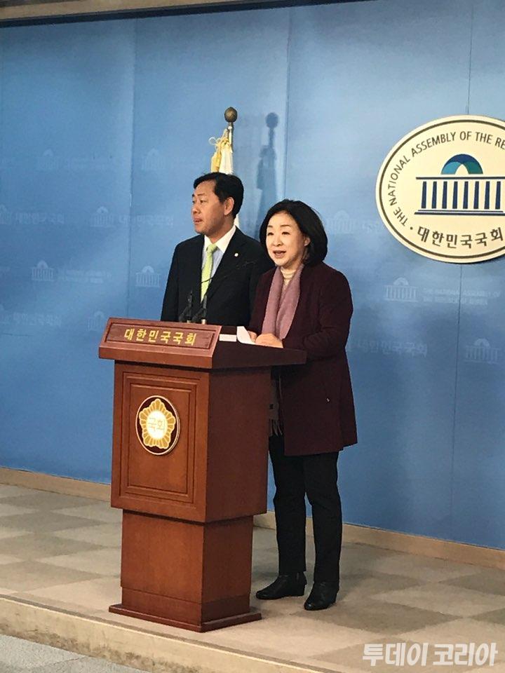 ▲ 국민의당 김관영, 정의당 심상정의원이 공직선거법 개정안을 발의했다.(사진=권규홍 기자)정의당의 심상정 의원은 "현행 공직선거법에는 풀뿌리 민주주의의 활성화와 유권자의 의사를 반영하기 위해 기초의회 의원선거에서 중대 선거구제를 도입해 운영중이다. 이를 위해 법에는 지자체별 읍면동의 규모와 생활권등을 고려해 2인에서 4인까지 기초의원 의원들을 선출할수 있게 하고 있으며 불가피한 사정이 있는 경우에 한해 조례를 마련해 4인 선거구의 경우 2인 선거구로 나눌수 있게 하였다. 하지만 그간 여야 거대 양당은 자신들의 기초의회 독식을 위해 특별한 사정이 없음에도 불구, 4인 선거구를 2인선거구로 나누는 조례안을 제정하여 선거를 치러왔다"고 주장했다.