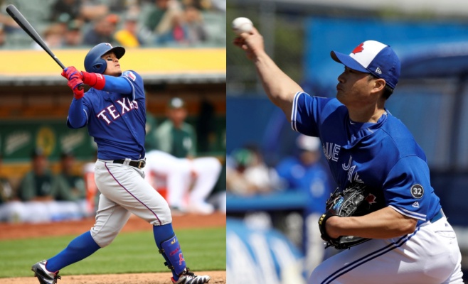 ▲ 추신수(왼쪽)와 오승환 선수.[투데이코리아=김태운 기자]메이저리그 텍사스 레인저스에서 활약 중인 추신수 선수가 3경기 연속 홈런을 터트렸다. 이날 추신수는 5타수 2안타 1홈런 2타점 2득점으로 맹활약 했지만 팀은 8대 5로 지고 말았다. 상대팀 구원투수로 등판한 오승환은 2안타를 허용하며 2실점하는 불운을 겪었다.