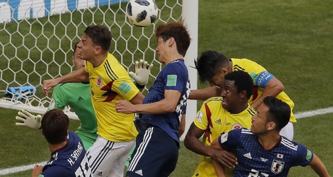 ▲ 일본의 오사코 유아가 헤딩슛을 성공시키고 있다.19일 오후 9시(한국시각) 콜롬비아와의 H조 1차전 경기를 펼친 일본은 전반 3분만에 엄청난 행운을 맞으며 경기를 시작했다.