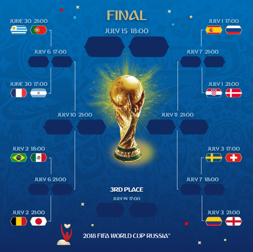 ▲ 2018 러시아 월드컵 16강 대진표. (사진=FIFA 페이스북)[투데이코리아=유한일 기자] 2018 국제축구연맹(FIFA) 러시아 월드컵의 조별예선이 29일(한국시간) H조 경기를 끝으로 마무리되면서 16강 진출국이 모두 정해져 이제 본격적인 월드컵 ‘축구 전쟁’에 돌입한다.