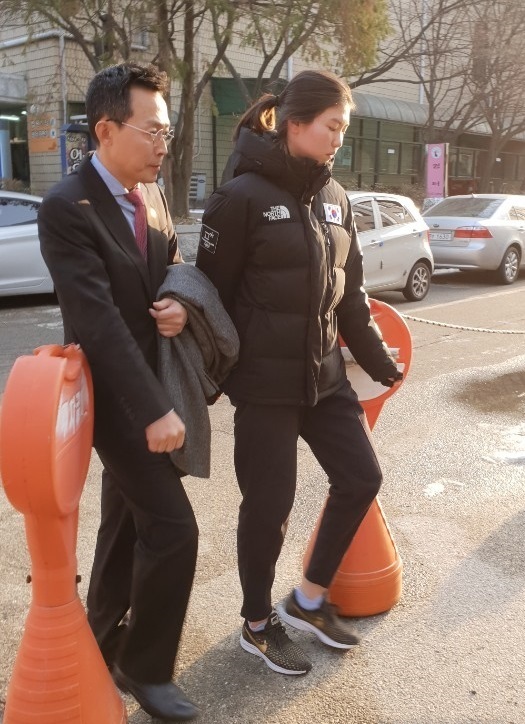 ▲ 쇼트트랙 국가대표 심석희 선수가 17일 수원지법에서 열린 조재범 전 국가대표팀 코치의 항소심 결심공판에 출석한 뒤 변호인과 함께 자리를 떠나고 있다.[투데이코리아=김현호 기자] 쇼트트랙 국가대표 심석희 선수가 조재범 전 국가대표팀 소속 코치로부터 상습적 폭행을 당했다고 밝혔다.
