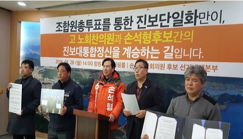 손석형 민중당 예비 후보는 민주노총 경남도본부장을 역임했고 8, 9대 경남도의원을 지내면서 지역노동계의 지지를 견고하게 받고 있는 실정이다.