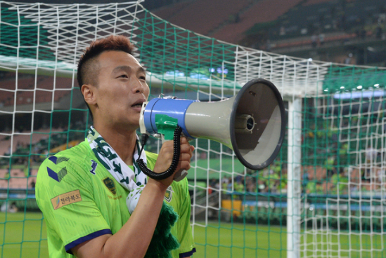 ▲ 지난 7월 7일 하나원큐 K리그1 2019 전북현대와 성남FC의 경기가 전북 전주시 전주월드컵경기장에서 실시된 가운데 고별전을 치룬 김신욱 선수가 고별사를 하고 있다.투데이코리아=이준호 기자 | 최근 중국 슈퍼리그 상하이 선화로 이적한 뒤 맹활약을 펼치고 있는 김신욱이 벤투호에 처음으로 이름을 올렸다.