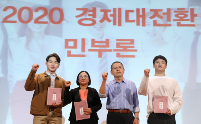 황 대표는 이날 국회에서 “소득주도성장 같은 ‘천민 사회주의’ 정책이 대한민국을 중독시키고 있다”며 “민부론은 대한민국 ‘경제 중병’을 치료할 특효약이 될 것” 이라고 했다.