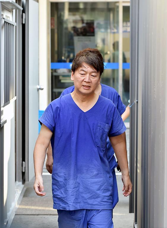 ▲ 안철수 국민의당 대표가 2일 오후 대구 중구 계명대학교 대구동산병원에서 신종 코로나바이러스 감염증(코로나19) 확진자 진료를 마친 뒤 땀에 젖은 채 음압병동을 나오고 있다. 사진제공=뉴시스투데이코리아=김충호 기자 | 국민의당 안철수 대표가 코로나19 확진자가 급증하는 대구에서 의료봉사 활동을 이어가면서 정치권 안팎에서도 안 대표에 대한 평가가 달라지는 분위기다.
