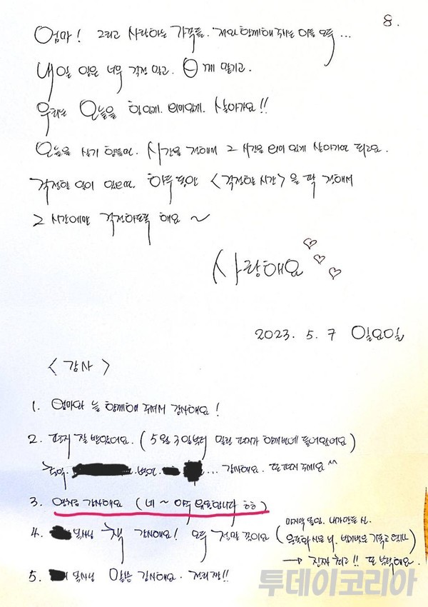 <투데이코리아>가 입수한 정 씨의 옥중 편지에 따르면 ‘주님의 흰돌교회’에 부교역자를 거론하며 “00 목사님 책 감사해요! 모두 정말 좋아요. 진짜 최고!! 또 부탁해요”라고 말했다. 특히, 편지 말미에 “영치금 감사해요(네~아주 유용합니다 ㅎㅎ) 00 목사님 말씀 감사해요. 정리짱!!”이라고 언급했다.
